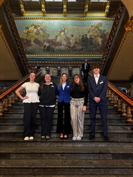 GMG iJag students participated in the Iowa Legislative Days on Feb. 18th in Des Moines. From left-Gracie Deal, Kami McWilliams, Gracelyn Peak, Summer Witte, Tavin Coleman.